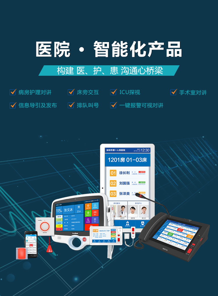 整合醫院八大子系統,具有一體數字化病房對講、門診排隊叫號以及信息發布等,為醫院提供一體化解決方案。